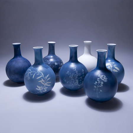 スタジオ・ギルテロはイギリスにおけるセラミック遺産の中心地ストーク・オン・トレントを訪れた後、セラミックに対する職人的アプローチに写真技術という稀な方法を組み合わせることで、この感光性シリーズを製作しました。作品はまた、英国古典ともいうべき、伝統的な青いセラミックに白のジャスパーウェアに敬意を表したものでもあります。