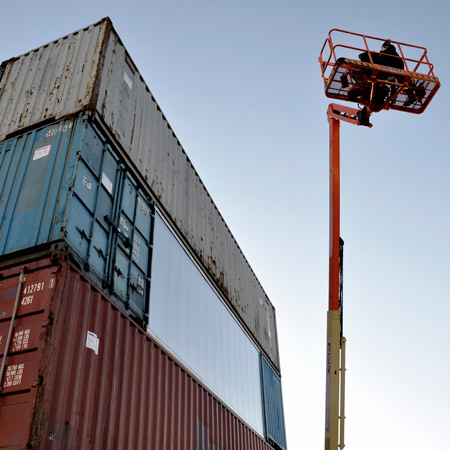 コンテナは過剰生産の良い例で、長距離の貨物輸送以外にも、多くの利用方法があるはずです。アメリカを例に、いくつも積み重ねた巨大なコンテナの山を目にする事があるはずです。目的地に輸送されたコンテナをもとの港まで運び戻すと非経済的なので、コンテナは輸送後にはその港に山積みにされるのです。