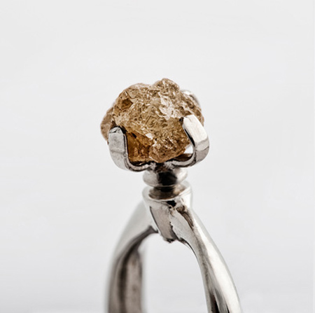 レイキャビークのデザイナーSruli Recht氏は、3つのダイヤモンド原石を交互にはめ込むことができる指輪をデザインした。
