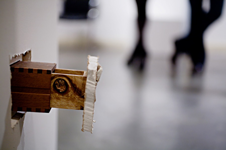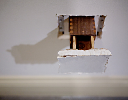 Unintended Functions(思いもよらぬ機能)と呼ばれるこのプロジェクトでは、漆喰の内側から飛び出した棚や引き出しなども展示されている。