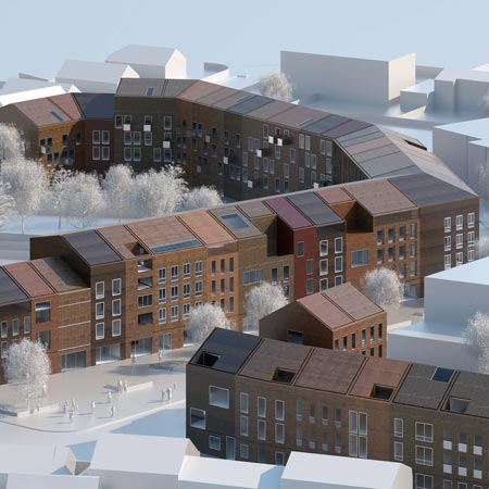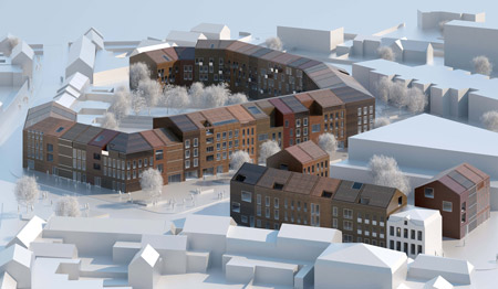 このプロジェクトは84戸の賃貸住宅と33戸の個人住宅、さらに数戸の店舗で構成される。