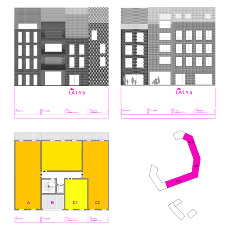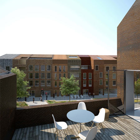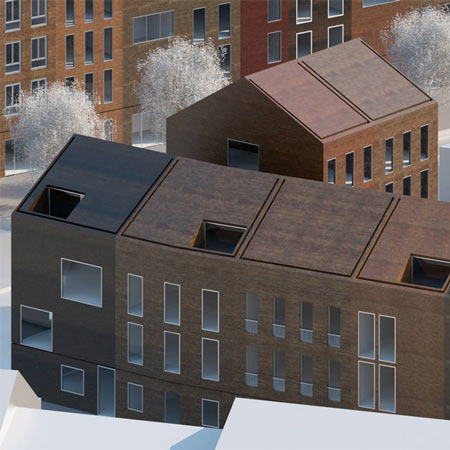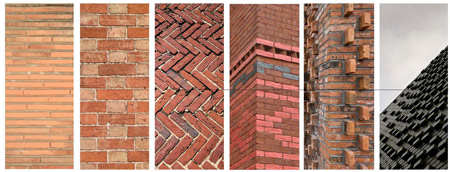117の住居ユニットは様々なレンガの模様で覆われ、その効果は視覚的にその住居開発全体を