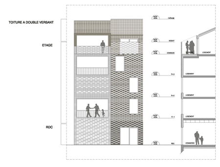 中世よりMouvauxの住民は、主として繊維産業に従事してきました。新しい住宅の外観には織物の幾何学模様を取り入れていませんが、注意して観察すると、フランス北部特有の煉瓦に、織物の「サージ」と「サテン」が常に様々な形で描かれていたことは明らかなのです。