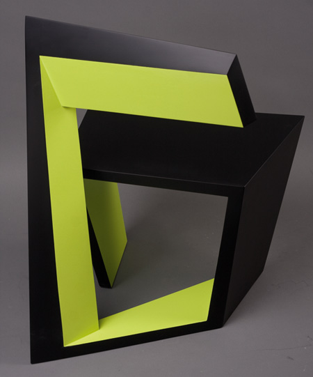 色と素材(木、プラスチック、金属など)を組み合わせることで、コンセプトショップでは商品に、展示会場では芸術作品になります。らせん状の形をした小文字の「a」が、aChairという名前の由来になっています。この作品は、デザインの分野で新たな創造活動の第一歩を踏み出そうとする作者の意欲を表すものです。