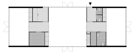 友人と会ったり、遊んだり、またある時は暑さ寒さをしのぐシェルターにもなる場所です。屋内の3部屋の遊戯室は、多様な用途に対応できるようシンプルな間取りとなっています。