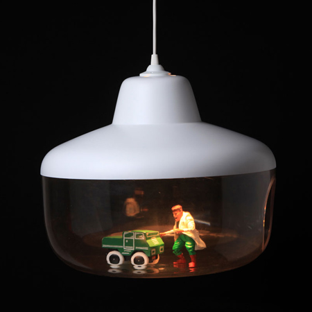「大好きなものたち」と名づけられたこのデザインは、所有者が大切にするモノにスポットライトを当てている。オブジェはプラスチックのランプシェイドの開口部から取り出すことができる。