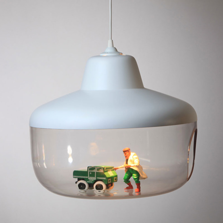 ストックホルム2010: 今週のストックホルム家具見本市で、ストックホルムのデザインスタジオ、チェン・カールッソンが光源下の透明な容器の中に、自分が大事にしているものを展示できるランプを発表した。