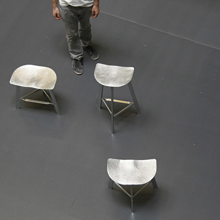 今月開催されたケルン国際家具見本市 / imm Cologne "Cologne2010"にて、フランス人デザイナー ジュリアン・ルノー氏 / Julien Renault が、通常はスチールに利用される鍛造技術を駆使したアルミニウム製家具のコレクションを発表した。