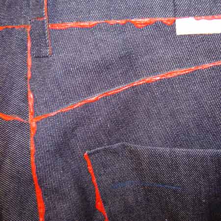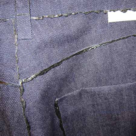 Juxtaposeコレクションの目を見張る新しい製品の数々は、糸による縫製ではなく接着剤でデニムを貼り合わせる方法によるもので、受賞を果たしたGluejeans社の基本理念になっています。型の目新しさもさることながら、このコレクションで最も興味深いのは、デニムを独創的に使い、新しい色の接着剤を用いて、新しい方法で貼り合わせていることです。