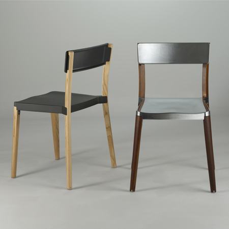 Lancasterは暗めの陽極処理と機械での磨き仕上げが施された壊れることのない鋳造アルミニウムの座面と背部が特徴的で、椅子脚はナチュラルもしくはダークステインのトネリコ材から選べます。椅子は6脚ほど積み上げることができ、2010年5月より販売開始です。