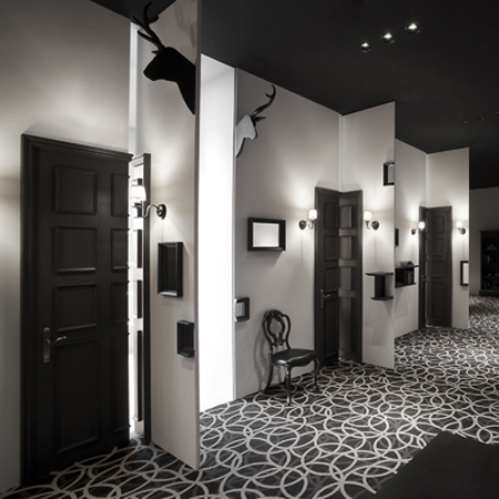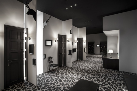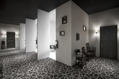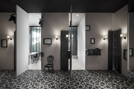 デザイン事務所Nendo が東京都赤坂にある精神科の内装を完成した。ここではどのドアも開かないので、患者とスタッフは壁の開口部分から建物内を移動する。.