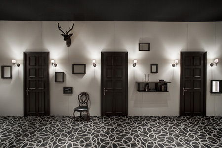 クリニックの壁に整然と並ぶ「扉」は開きませんが、扉ではない壁の部分が開くことによって、新しい空間へといざなってくれます。本棚を横に動かすと診察室が現れます。廊下の突き当たりの扉を開くと一面が窓になっています。ドアの開け閉めによって廊下の自然光が調節されます。