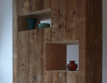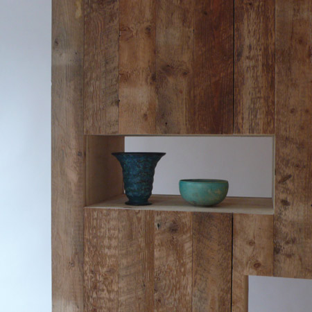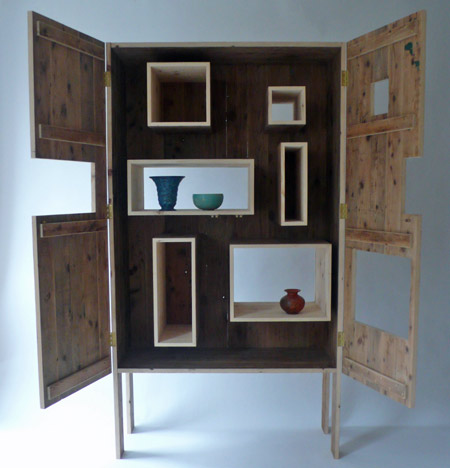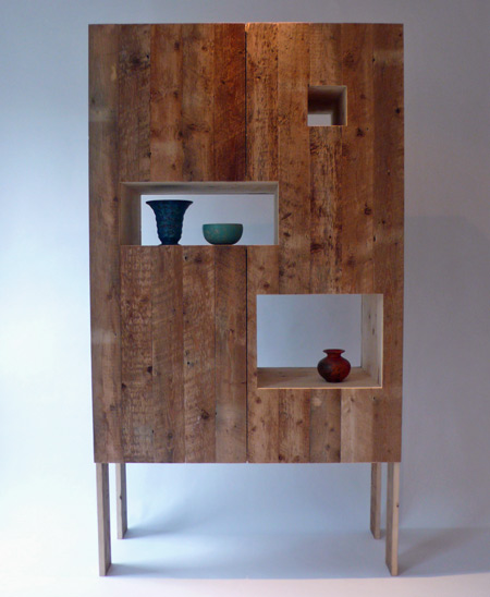 ロンドンのスタジオママ / Studiomamaのデザイナー、ニナ・トルスタープ氏が、再生床板を使用して内部にボックスを秘めたキャビネットを制作した。