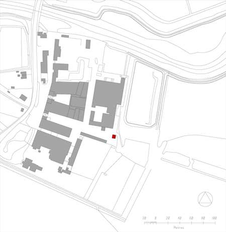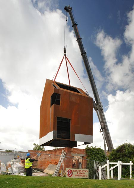 鳩小屋スタジオはその廃墟に存在しています。廃墟の横で組み立てられ、溶接が完了してからクレーンで挿入された構造体の張殻であるコーテンスティール製の「中身」はヴィクトリア時代の構造物の内部ボリュームを表しています。