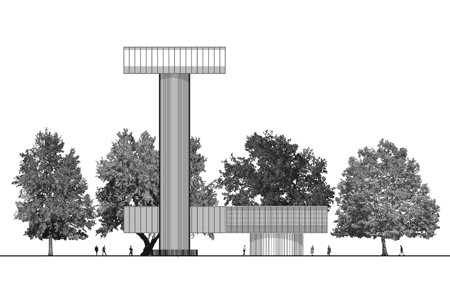 エンジニア事務所アトリエ・ワンがデザインしたメカニズムは、支柱を地上から押し上げ、建物の一部を40メートルも上昇させる。