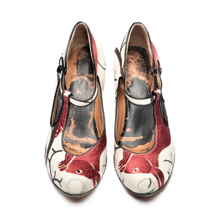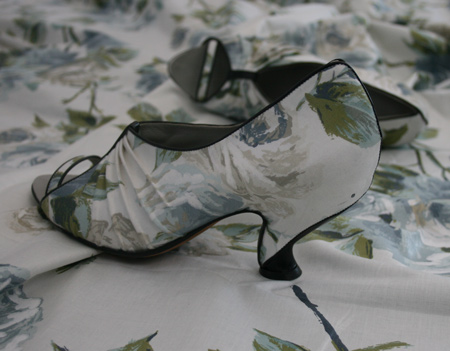 ノイルズ氏による2足の靴も展示されている。この靴の特徴はサンダーソンのファブリックに覆われた成形ラバーソール。
