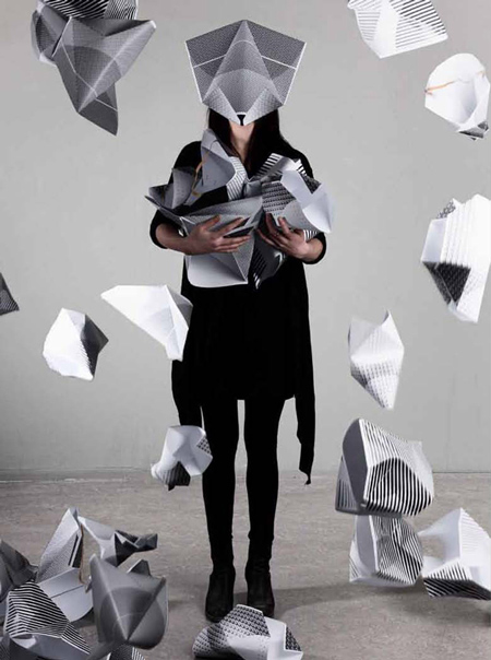 「A3 アニマルズ」と呼ばれるこの作品は、様々な大きさの紙に幾何学模様を印刷してホチキスでとめるだけで完成。