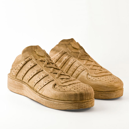 こちらは木製のトレーニングシューズTrainers carved from wood by Paul Coudamy