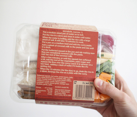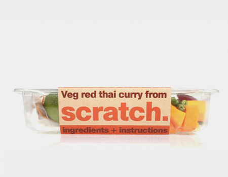 「スクラッチ」は忙しいロンドン市民に、文字通り「スクラッチ(素材)」から簡単に調理が出来るよう工夫された小さな食品会社と言えます。我々が考案したパックには、洗浄から刻み、さらに計量までを済ませた新鮮な食材と、詳しい調理方法が一式セットされています。それぞれ一人前で約20分間火にかけ、2回に分けても使えます。