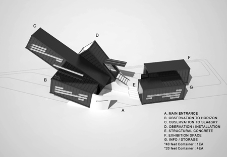 このような状況下で、公共の場における未使用コンテナーの実用的再利用の実現や、周りの農村風景と調和を図るために味気ない風貌のコンテナーに新たな機能美を持たせることを目指し、韓国国内で最も大きな港の一つをもつインチョン市の市長より新規構想の発案がなされました。それが「オーシャン・スコープ」です。