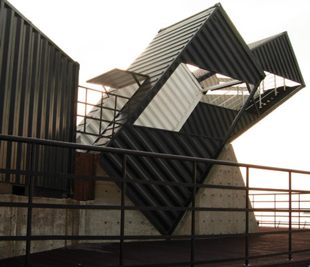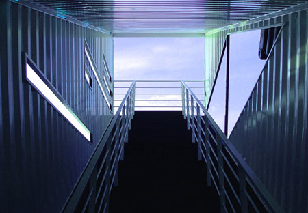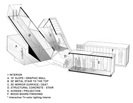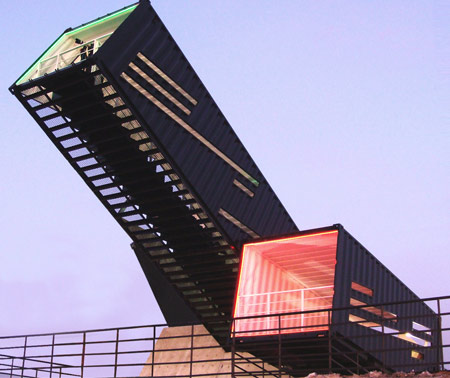 この構造は、人々がコンテナー内の階段を登り、より高いビューポイント地点へたどり着くことを可能にします。
