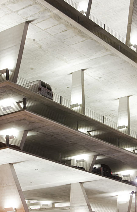 彫刻的な駐車場施設の各階は自然光に溢れ、うまく街の印象的な眺望を提供します。