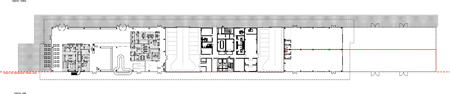 基部は幅22メートル、長さ28メートル、高さ4.4メートルの建物です。ここにはロビー、数か所のオフィス、会議室、さらに倉庫が収納されます。基部に当たる1階は、第一ターミナルや他の付属施設と合体します。基部と管制塔は、垂直にせり上がった外壁によって結ばれます。