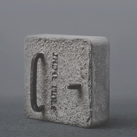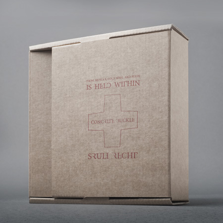 コンクリートバックルは密封された再生鉄鋼を曲げて作られたバーとフックの付いた4つの手圧鋳造のバックルセットです。黒色、ローズグレイ、ベイレッドの馬革ベルトが一緒に箱に入っています。1つもしくは4つ全てのバックルと1本もしくは2本のベルト、といったようにベルトとバックルの様々な組み合わせたセットが可能。