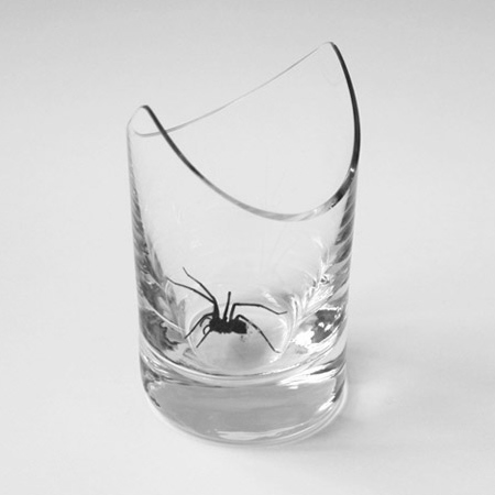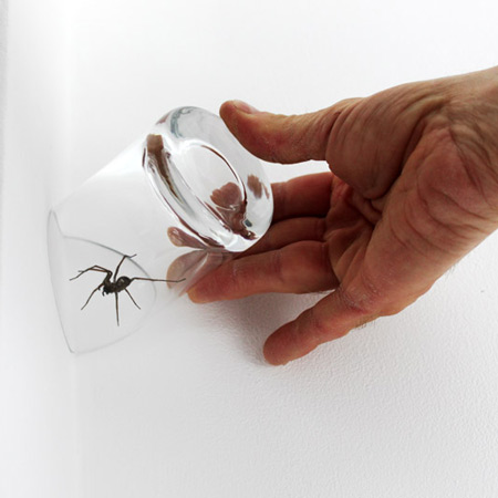部屋の隅にせっかく追いやった蜘蛛やその他の虫を、今度は捕まえるのが難しくてフラストレーションを起こすと言った典型的な問題に立ち向かうために、部屋の角にあった形をしたグラスをデザインしました。