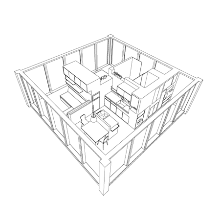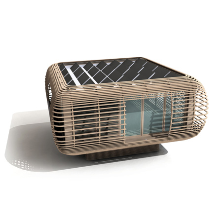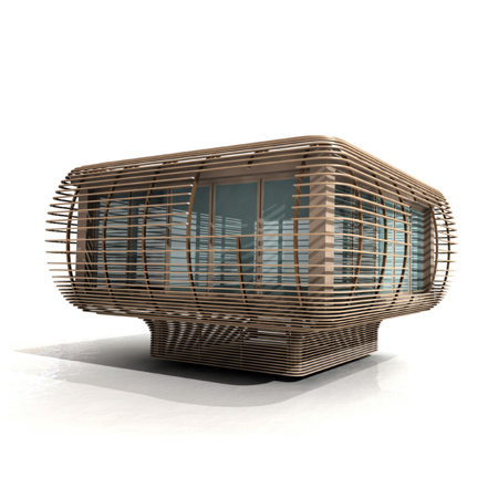 格子の水平な桟によってFINCUBEの中はプライバシーが保たれ、森林、草原、山腹、さらにリゾート地など、場所を問わず設置することが出来ます。半永久的で敷地を選ばないデザインによって、「FINCUBE 」は適応性に富んだ住宅であると同時に隠れ家であり、そして終生の友となります。
