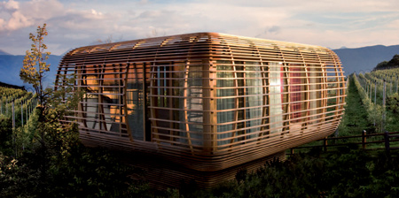 自然と一体化したハイテクこそが、まさに自然環境とエネルギー消費に配慮した、新しい組み立て式ポータブル・ハウスのコンセプトです。Werner Aisslinger氏がデザインし、南チロル地方のプロジェクト・チームによって建築された住宅「FINCUBE」は、イタリア北部の都市ボーッエン近郊の、有名なドロミテ=アルプスを間近に望む標高1200メートル地点に建設されました。この遊牧生活を思わせる自然の中の隠れ家は、先頃より実験的にボーッエンよりも標高の高いリッテンで展示されています。