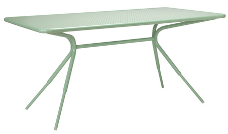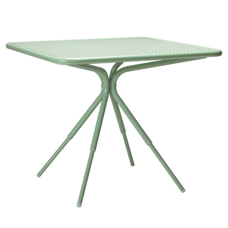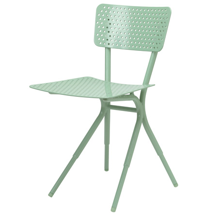 「Grasshopper(バッタ)」と呼ばれるこれらの家具一式は、鋼鉄とアルミに粉末コーティングした黄緑色のテーブル2種類と椅子で構成されている。