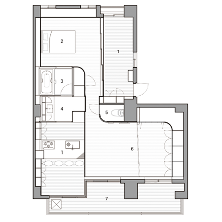 大きな部屋自体が住宅になり、そこにルームテラスと呼ばれる拡張スペースが増築されます。
