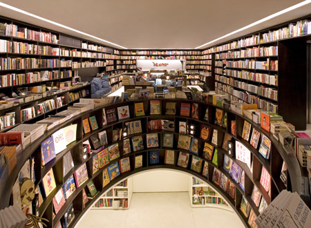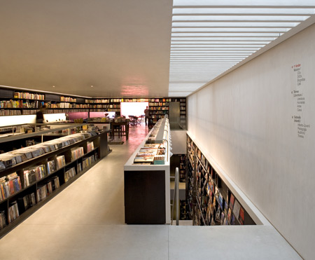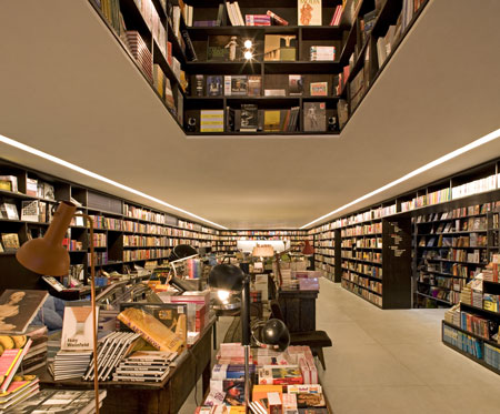 Livraria da Vilaにおけるそのような快適な環境作りは、天井を低くした空間、落ち着きのある色や照明、さらに床から天井まで延々と伸びる一見無秩序のようでありながら配慮が行き届いた書棚に反映されています。