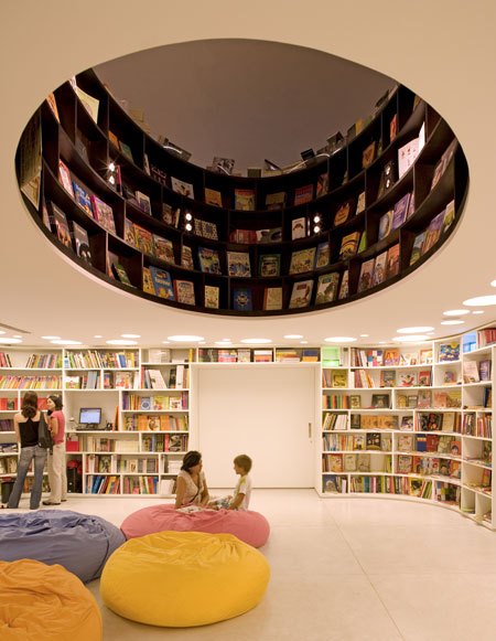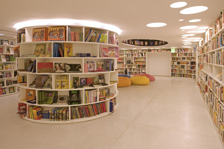 地下は子供用向けの書籍専門のフロアーで、学習教室用の小さな講堂が設置されている。