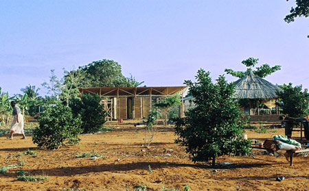 私たちは手ごろな経済的フレームワークの中で収めたいと考え、現地の方法に新しい解釈を加えて、出来る限り地元の材料を使う努力をしました。全構造をその場で実演しながら組み立てていくため、チマンドの人々が簡単に理解でき、自分たちで実行することもできます。校舎そのものが、教育的なのです。