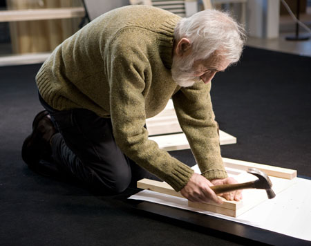 顧客はプレカットされたパイン材の板、釘、そして説明書を購入し、金槌のみで自ら椅子を組み立てる。