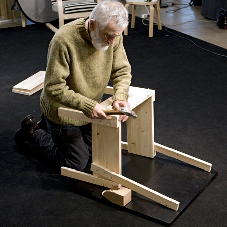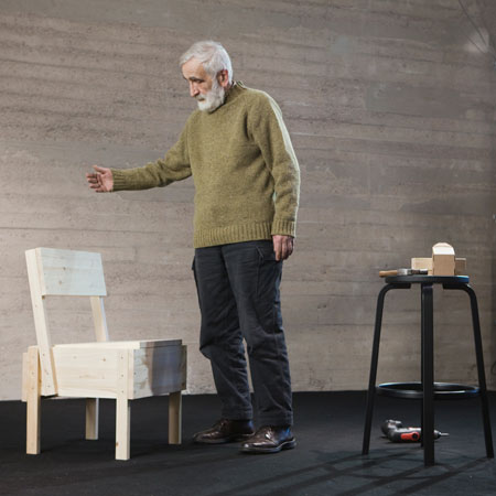 プロジェクトの当初のアイデアに従って、顧客は椅子用のプレカットしたパイン材の板、釘、説明書のセットを購入します。「デザインはいつでも教育である。」とマーリ氏は簡潔に言います。