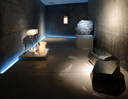 このプロセスにおいて、デザイナーたちは木材、獣皮、パルプ、繊維、土と火を好み、自然で持続可能な素材を用いてデザインを規定します。まるで現代の穴居人のように住まいを再発見し道具や人工機械を新たにデザインし、さらに慎ましく内容の充実した生活様式のための古風な慣習を概念化します。