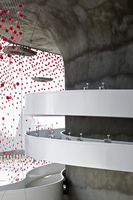 デザインコンセプトは多くの矛盾したエレメントの混在として明白であり、中国の教えにある「陰陽」が、高度技術と自然原理の巧妙なコンビネーションを実現するために建物全体にうまく反映されています。