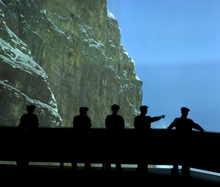 ケーブルカーに乗って、来場者は伝統的なスイスの景色を堪能しながら、屋上へ着きます。椅子型のリフトは、スイスの都市文明に焦点を当てた展示が紹介される地上1階部分から、喧噪から離れた自然に近い静かな空間が設けられた屋上へと上がって行きます。上昇中、斜面に沿って設けられた50の双眼鏡ステーションが提供する革新的で持続可能なスイスの成功物語を3Dで垣間みることができます。