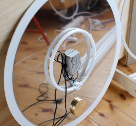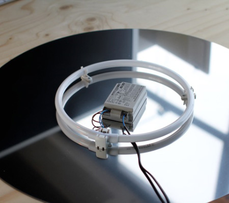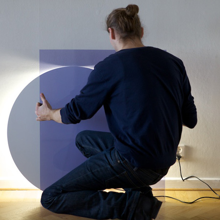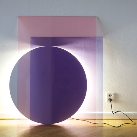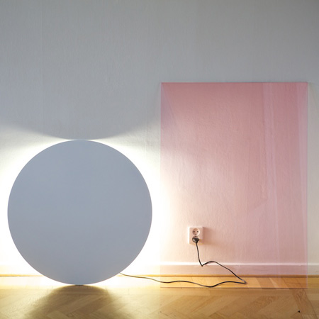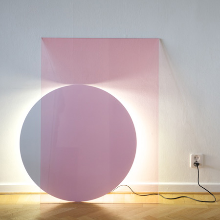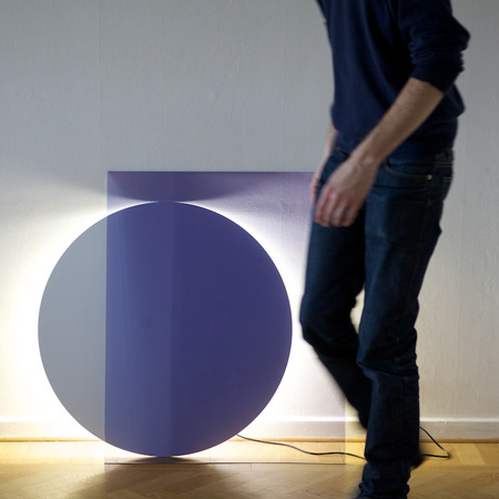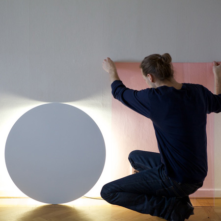 「カラー」と名付けられたこの照明は、不透明のディスクの裏側に円形蛍光灯がセットされているため背後から光が照らされる構造。