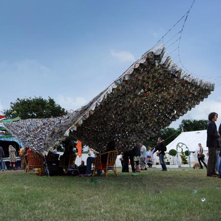 ブルース・マンローの呼びかけの結果、このインスタレーションのために60万枚の不要なCDが一般の人々から寄付され、新しい作品「CDの海」を週末を利用してキルミントン近くの平原に制作しました。
