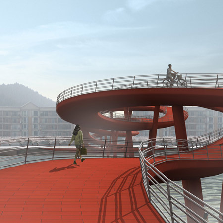 最近、Dezeenは「交差する橋」に関する記事を取り上げているが、今回はまた新たな例をご紹介したい。NEXT ArchitectsとRietveld Landscapeがアムステルダムにデザインした「交差する橋」である。