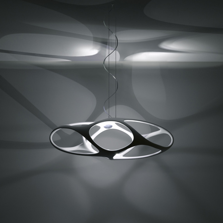 このコレクションにはペンダントランプ、壁に立て掛けるフリースタンドランプ、そして石膏と大理石の台の上を自由に回転させることができるデスクランプがある。