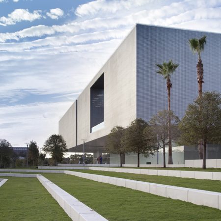 建築的プロジェクトとしては敷地内の歴史的な要素(1739年にVaubanによって造られた城塞壁、1871〜73年に建設のブルジョワの別荘、1871〜78年に整備された庭園と公共の公園)を残しながら展示スペース(既存の350㎡からおよそ1200㎡に拡張)を最大に拡大し、グローバルな都市的および自然な形勢の新しいバランスを確立しています。新しい建物のボリュームを半分地下に埋設すること、そして周囲の公園より勝ることなくむしろ反映する半透明な赤い真鍮製の穿孔のほどこされた巨大なシートで覆われたダイナミックなファサードを配置することでうまく融合されました。