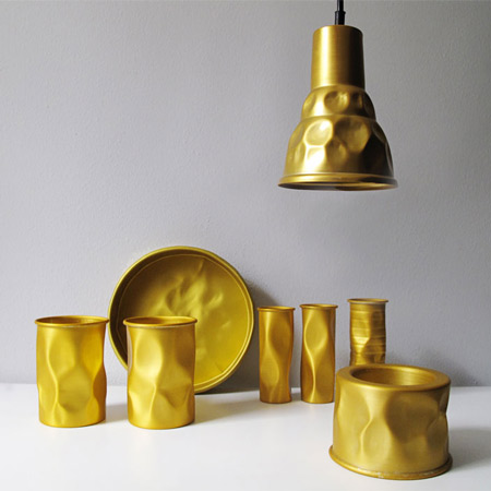 ポルトガル語で「打ち延ばされた」という意味を表すBatucadaと名付けられたこの電気スタンドは、ジャハラ氏が進めているBatucada range of crumpled aluminium homewareプロジェクトの最新作である。