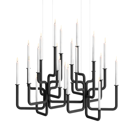 Funambuleと呼ばれるこの燭台は、腕木の配置によって形が様々に変化し、最大25本のろうそくを立てることができる。
