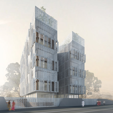 構造物の密度を測定するパラメトリック工法によって生まれたこの模様は、室内に差し込む光を調節する役目を果たします。