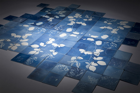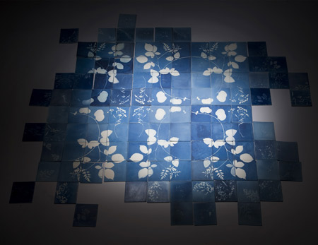 白い花瓶やタイルに感光性の化学薬品が注入され、花の標本(低所得者用の公営住宅プロジェクトから入手された種も含む)が組み合わされて、セラミックの表面に置かれました。
